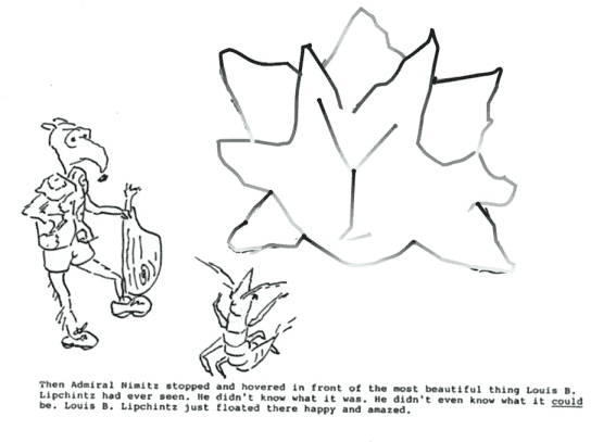 | Then Admiral Nimitz stopped and hovered in front of the most beautiful thing Louis B. Lipchintz had ever seen. He didn't know what it was. He didn't even know what it could be. Louis B. Lipchintz just floated there happy and amazed. | ||